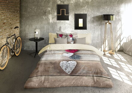 Posteľné obliečky s romantickou potlačou pletených srdiečok na drevenom podklade zo 100% Renforce bavlny. Tento husto tkaný materiál je mäkký, priedušný, šetrný k detskej pokožke a zároveň odolný voči opotrebovaniu. Digitálna potlač s reaktívnymi farbivami zabezpečuje sýte farby a ostré detaily aj po mnohých praniach. Praktické zapínanie na zips je bezpečne ukryté, takže netlačí ani nedráždi. Obliečky majú rozmery 140x200 cm (paplón) a 70x90 cm (vankúš) a sú ideálne do každej spálne. Certifikát OEKO-TEX® Standard 100 garantuje zdravotnú nezávadnosť.
